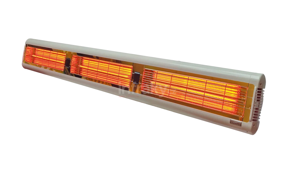 U třílampového modelu 6,0 kW je zlatý reflektor precizně navržen tak, aby optimalizoval překryv tepelných kuželů všech tří karbonových lamp a vytvářel jednu souvislou, rovnoměrně prohřátou zónu bez studených míst mezi lampami. Výsledkem je plynulý a konzistentní tepelný komfort po celé pokryté ploše – hosté sedící kdekoli v dosahu zářiče pocítí stejně intenzivní a příjemné teplo.