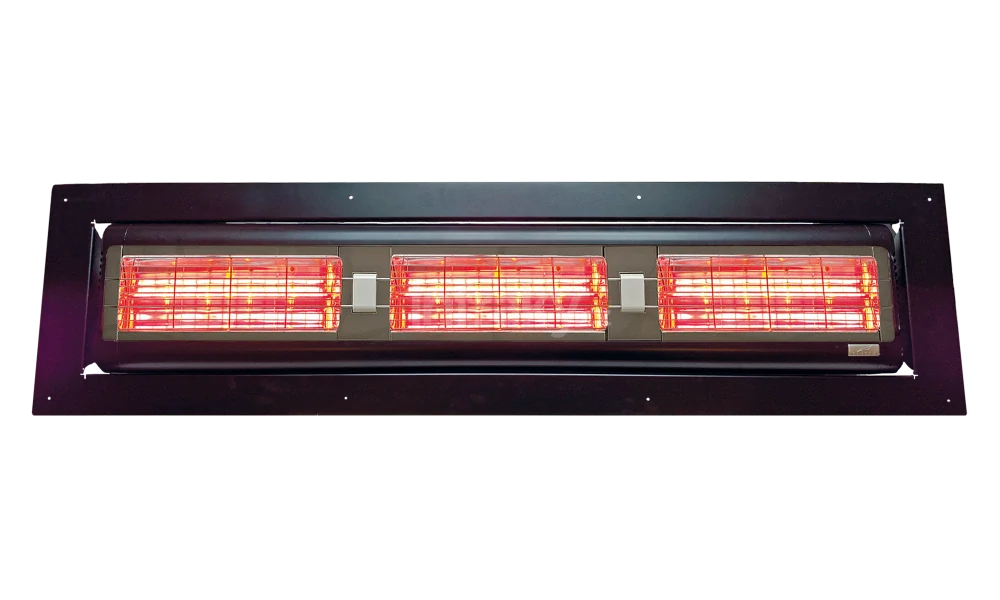 Infrazářič TANSUN Sorrento Inbouw Triple 4,5 kW a 6,0 kW – Zápustný třítrubicový Low Glare quartzový infrazářič do podhledu