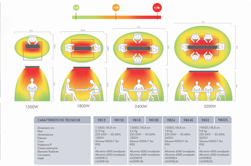 Kompletní modelová řada dlouhovlnných infrazářičů MO-EL Hot-Top – tichých, elegantních a komfortních topidel italského původu, která využívají technologii dlouhovlnného infračerveného záření spektra IR-C. Na rozdíl od krátkovlnných zářičů vydává Hot-Top teplo zcela bez viditelného světla – neruší hosty, neoslňuje a nevydává žádný hluk. V nabídce najdete jedno-, dvou- a třífázové varianty s výkony od 1 380 W až po 4 500 W, vše v kvalitním hliníkovém provedení s možností nástěnné, stropní nebo stojanové instalace. Ideální volba pro restaurace, wellness, bazény, ordinace i moderní bytové terasy.